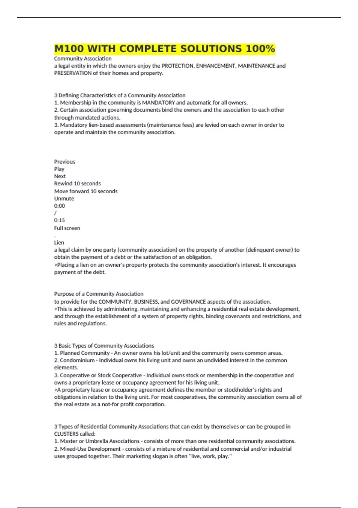 obligations in relation to the living unit. For most cooperatives, the community association owns all of