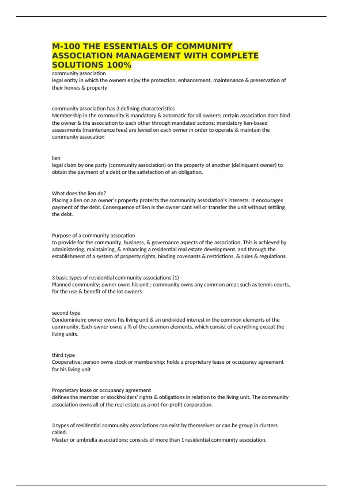 defines the member or stockholders' rights & obligations in relation to the living unit. The community
