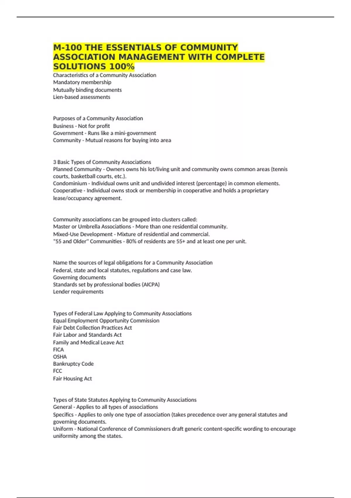 Specifics - Applies to only one type of association (takes precedence over any general statutes and