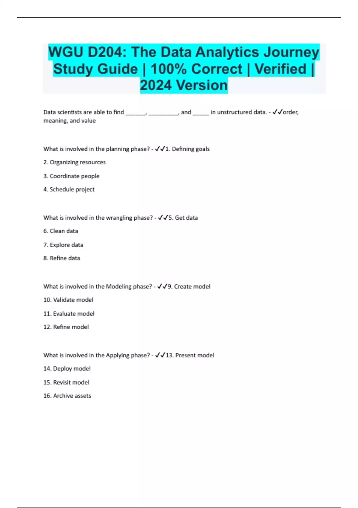 WGU D204: The Data Analytics Journey Study Guide | 100% Correct | Verified | 2024 Version