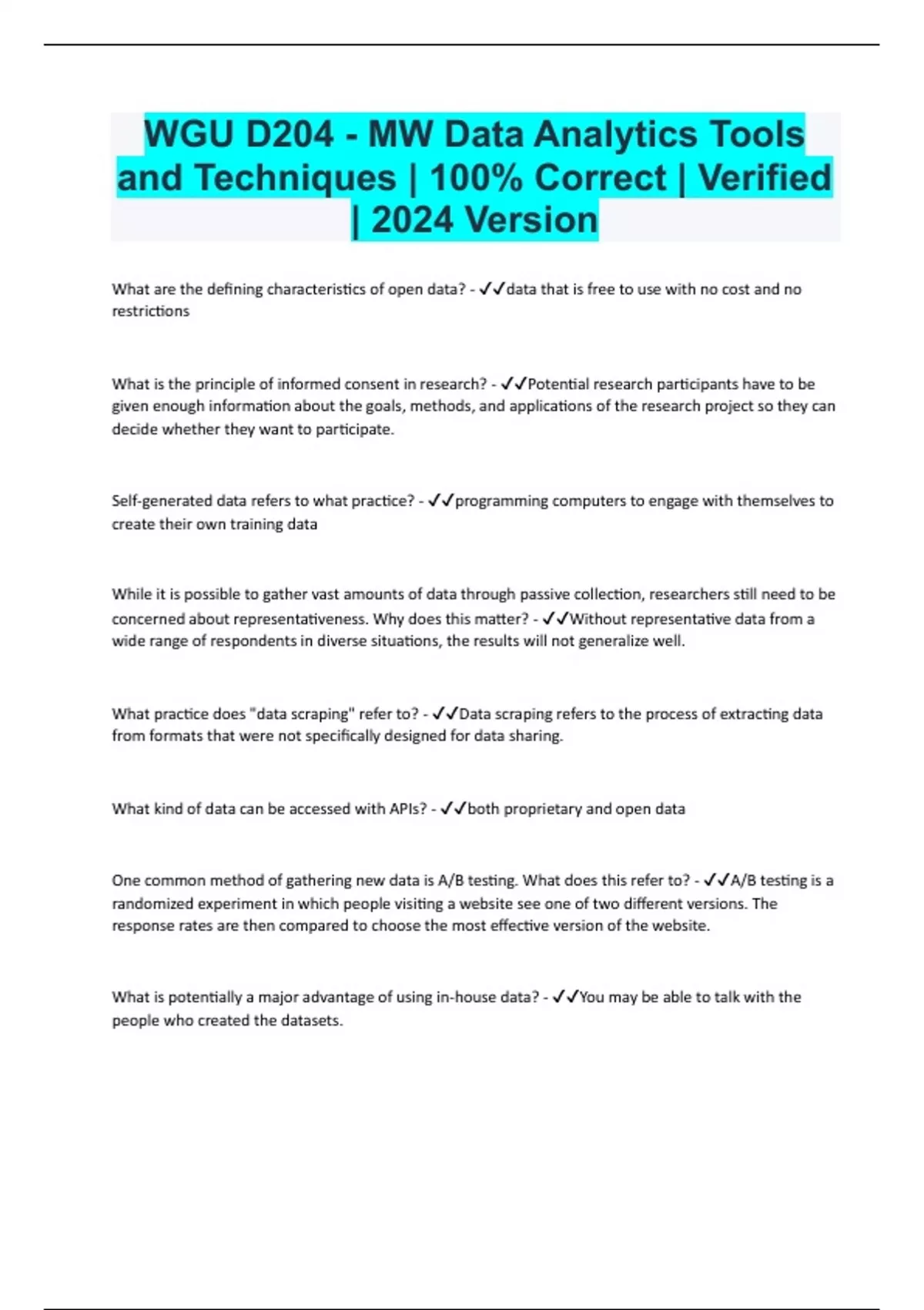 WGU D204 Bundled Resources with Complete Solution | Expert Verified 2024/2025 | Guaranteed Success