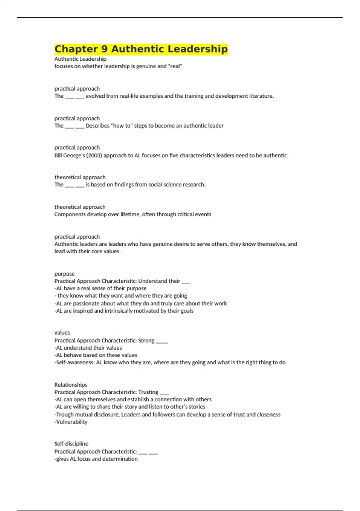 Bill George's (2003) approach to AL focuses on five characteristics leaders need to be authentic.