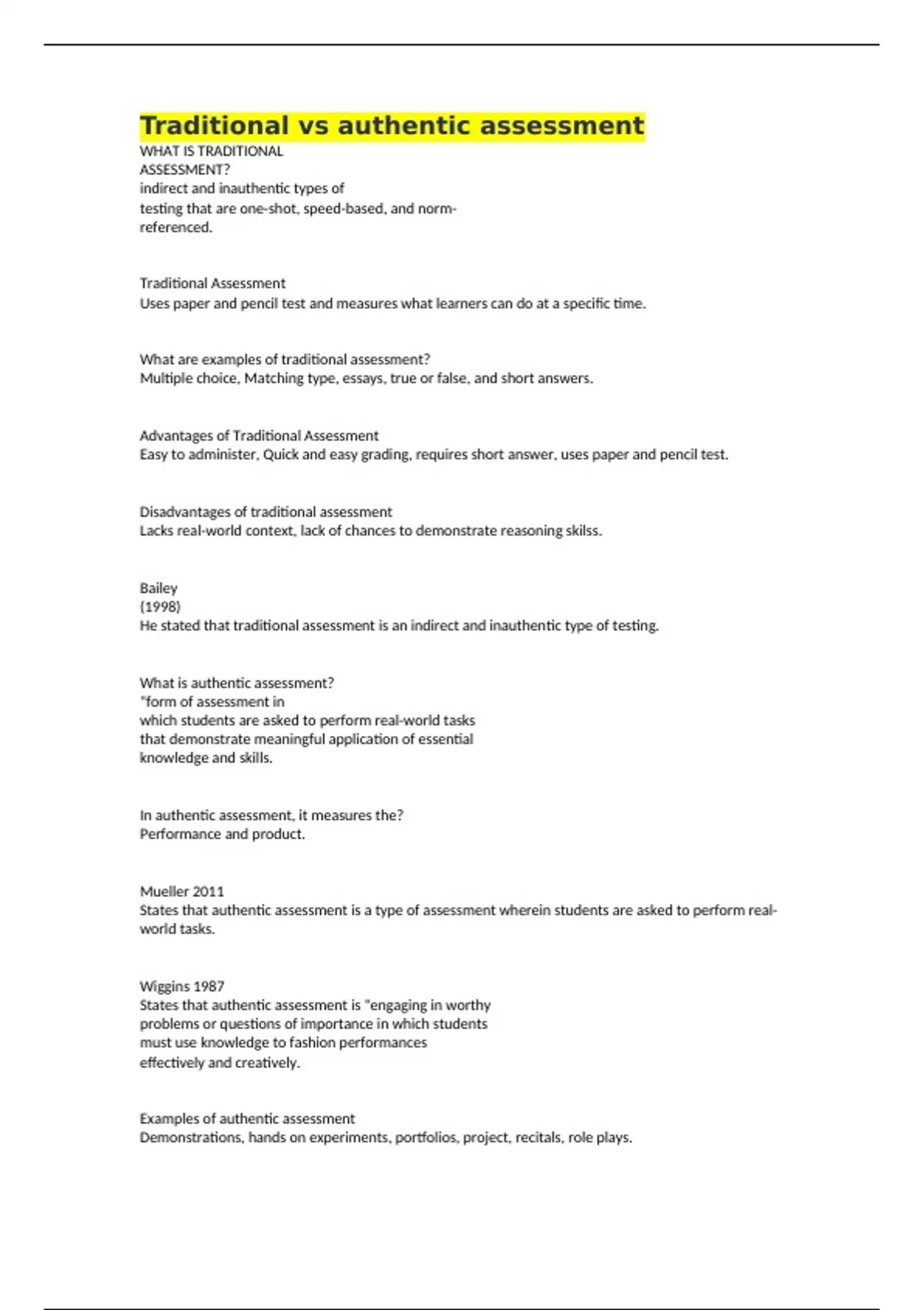 Disadvantages of traditional assessment