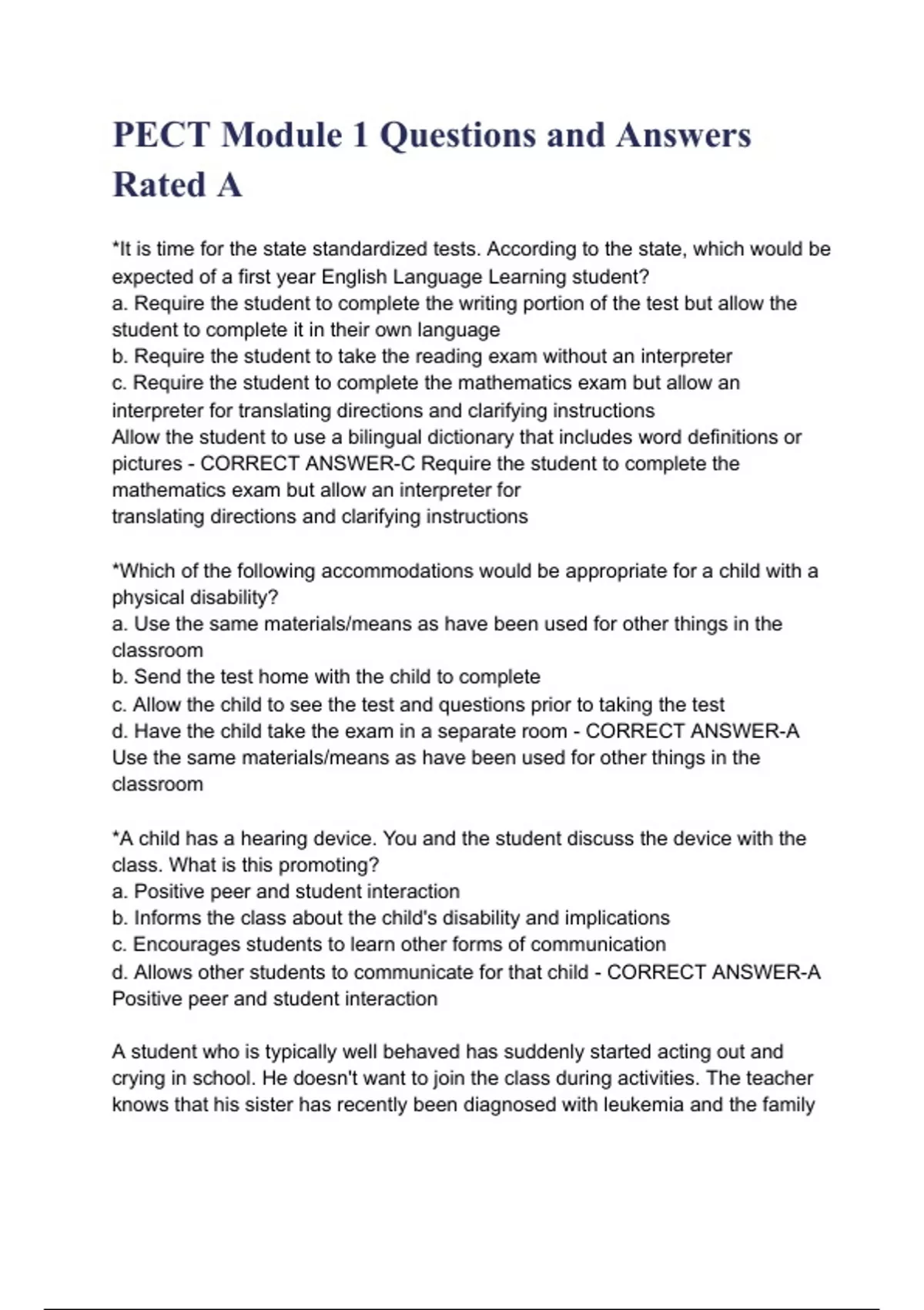 PECT Module 1 Questions and Answers Rated A