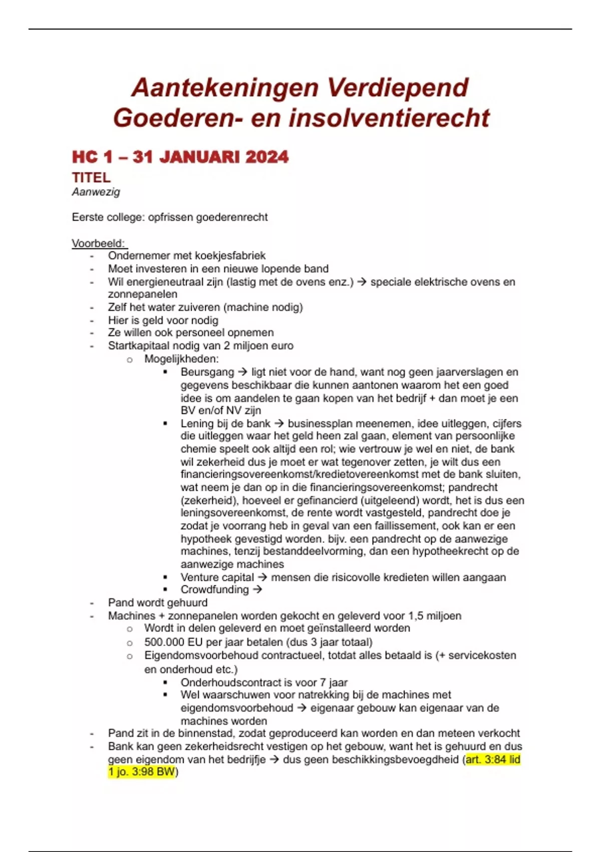 Hypotheekrecht: is een zekerheidsrecht, kan op (registergoederen) onroerende zaken +