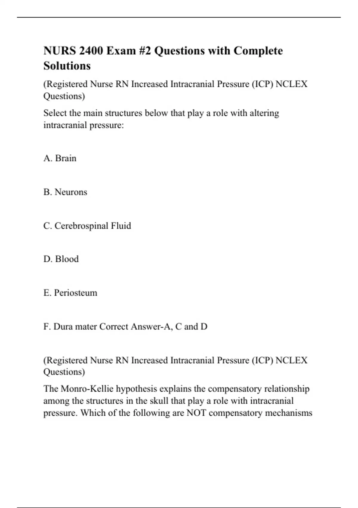 nurs 2400 exam 2 questions with complete solution