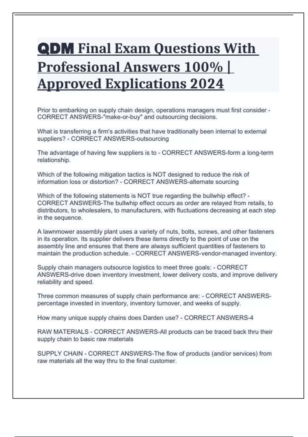 QDM Final Exam Questions With Professional Answers 100% | Approved Explications 2024