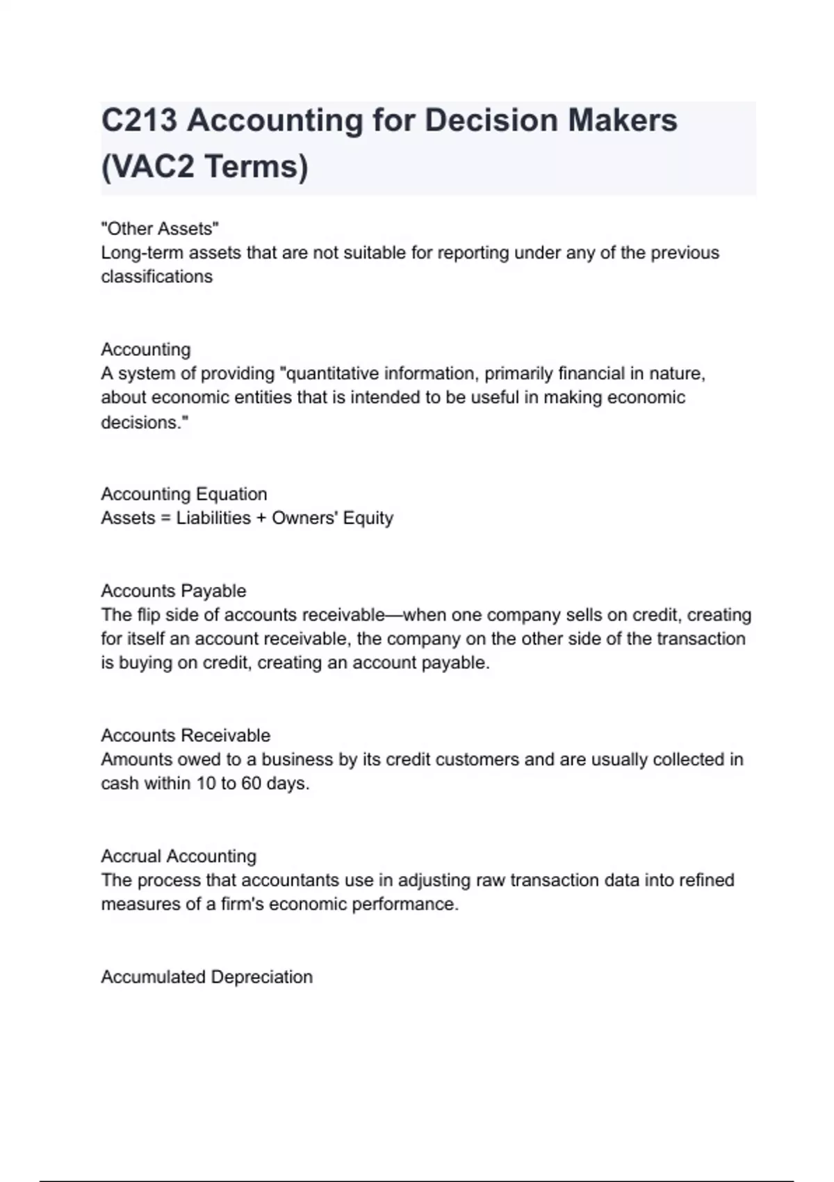 c213 accounting for decision makers vac2 terms
