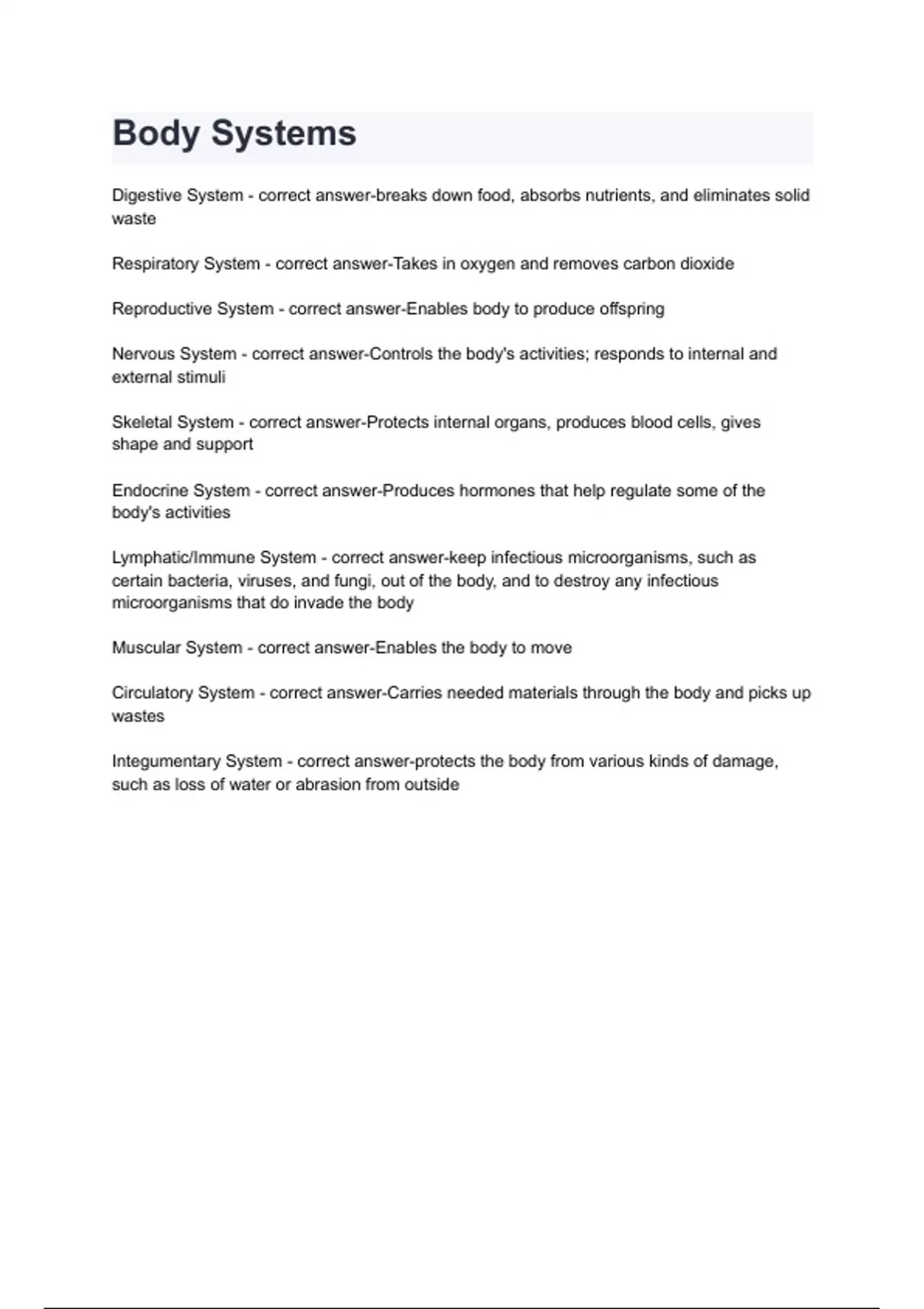 Exam of 1 pages for the course 11 Body Systems at 11 Body Systems (body systems (1).)