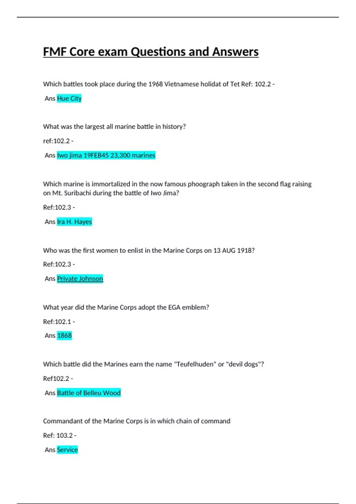 FMF Core exam Questions and Answers.