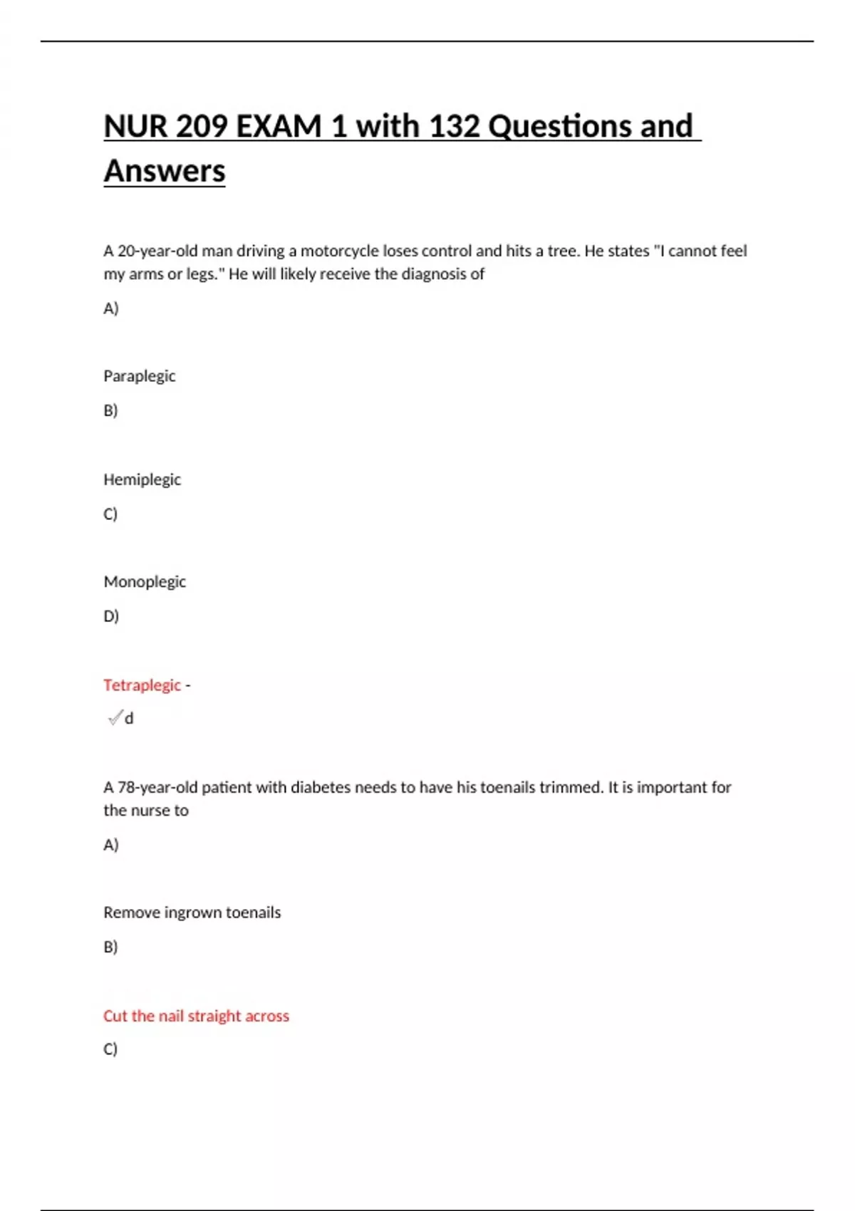 nur 209 exam 1 with 132 questions and answers