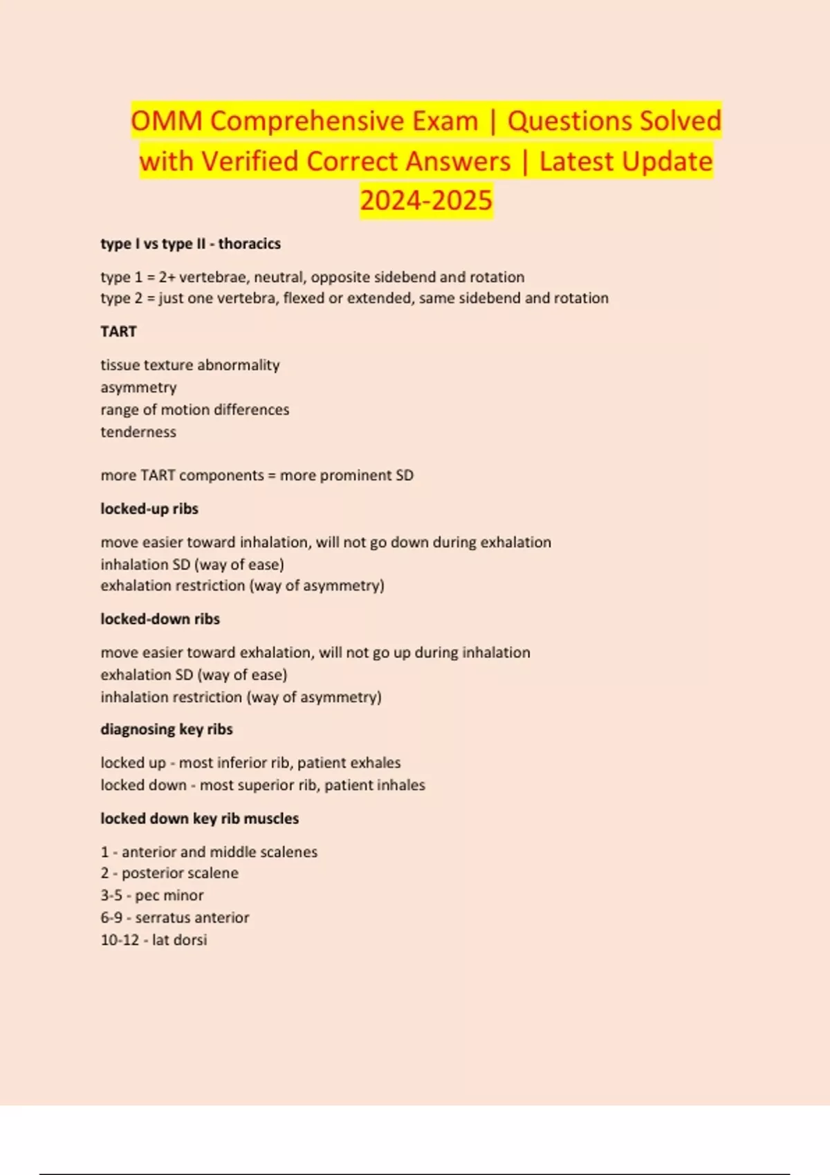 OMM Comprehensive Exam | Questions Solved with Verified Correct Answers | Latest Update