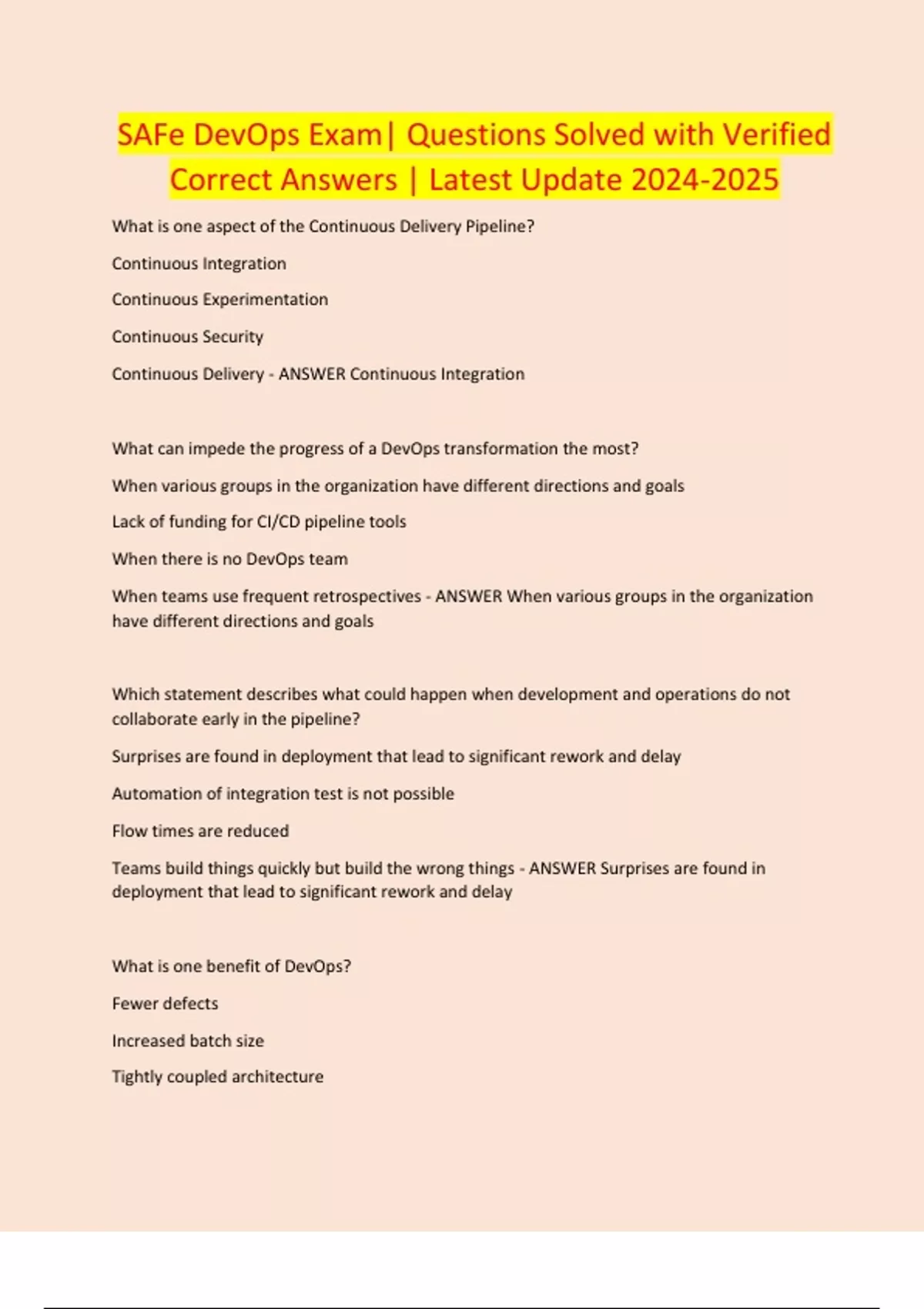 SAFe DevOps Exam| Questions Solved with Verified Correct Answers | Latest Update