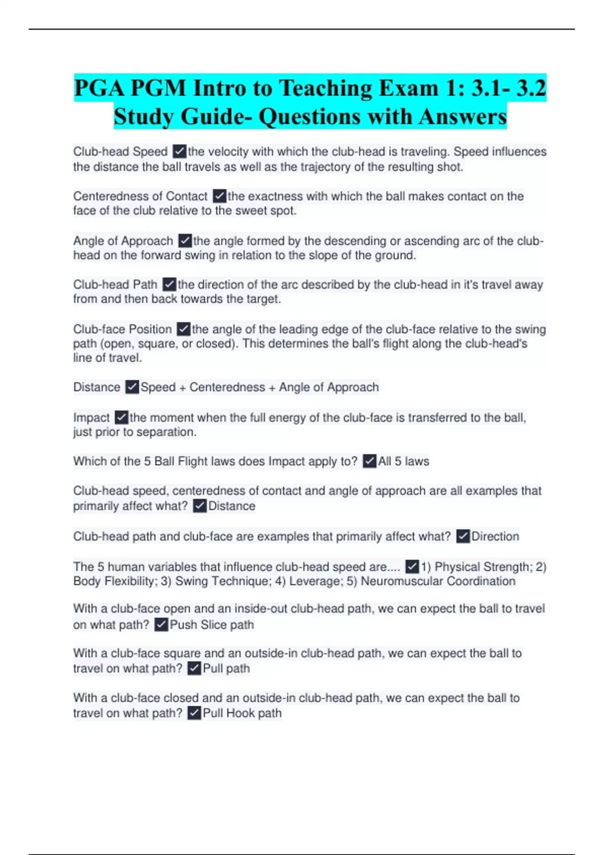 PGA PGM Intro to Teaching Exam 1: 3.1- 3.2 Study Guide- Questions with Answers