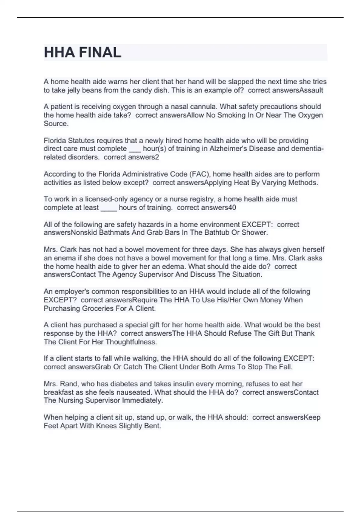 HHA FINAL with perfect answers 2024