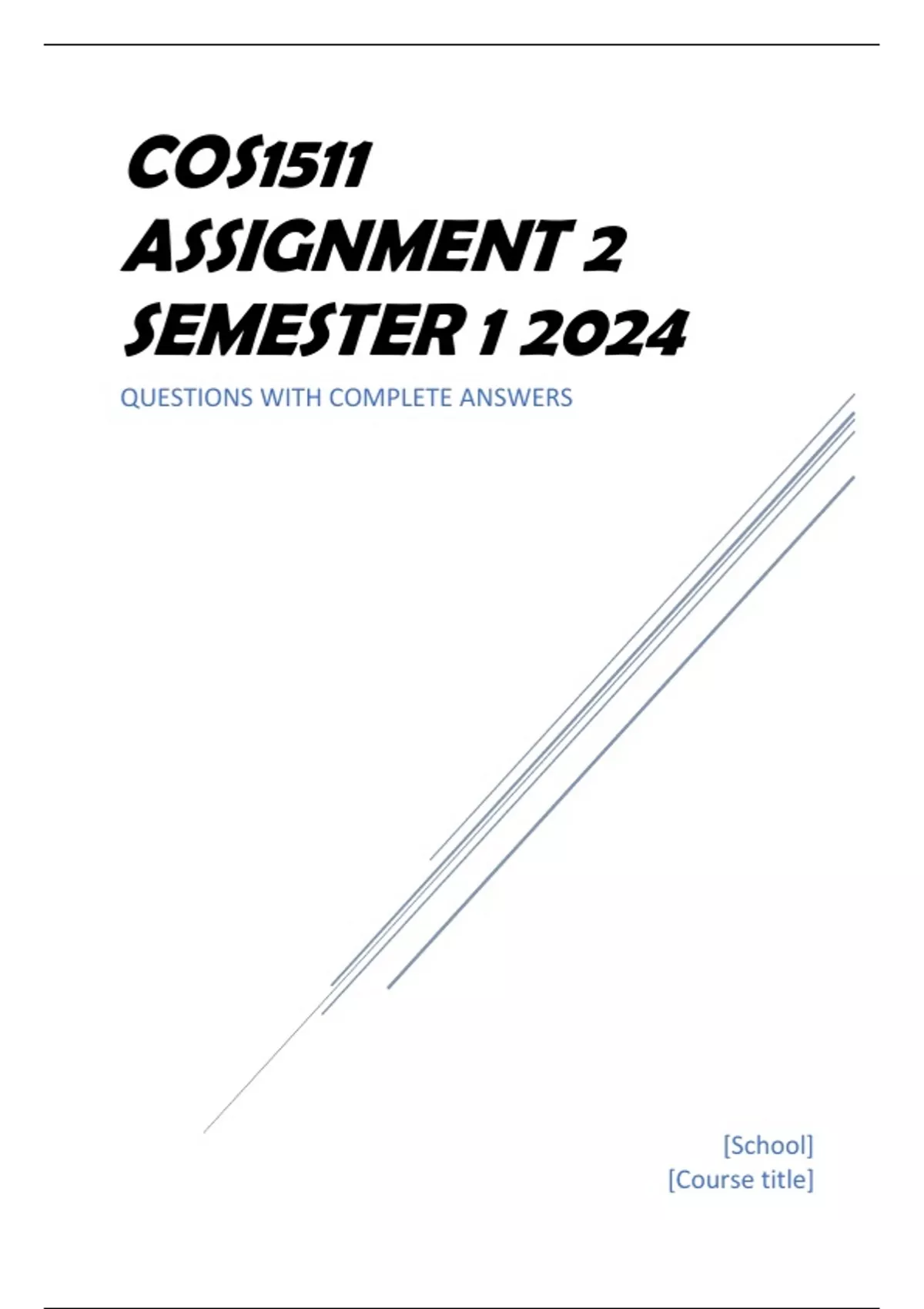COS1511 Assignment 2 Semester 1 2024 QUESTIONS WITH COMPLETE ANSWERS