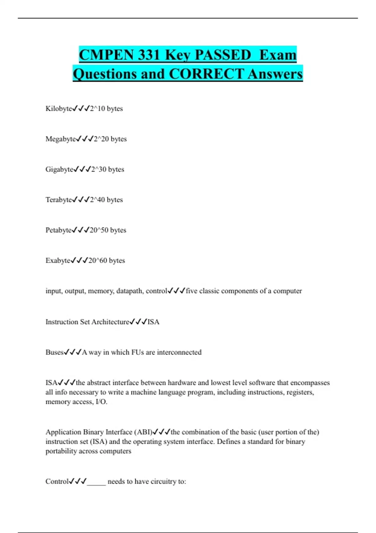 CMPEN 331 Key PASSED Exam Questions and CORRECT Answers