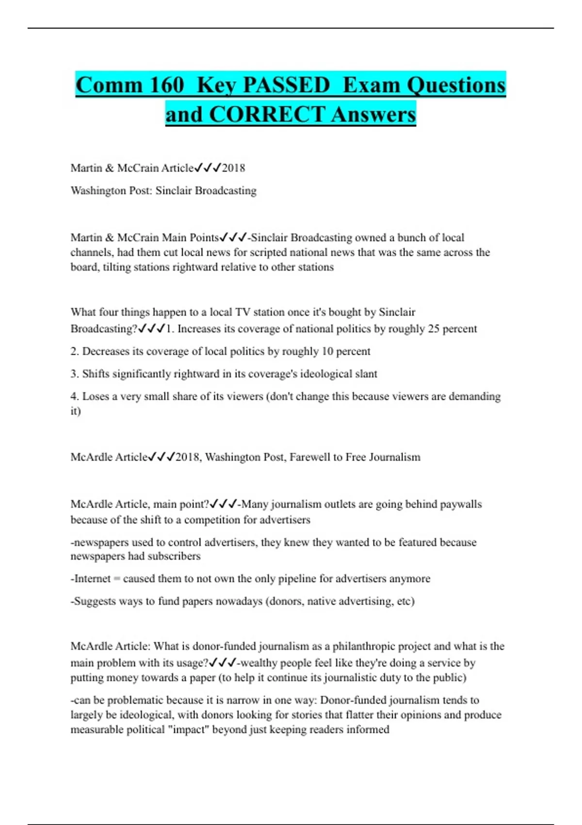 Comm 160 Key PASSED Exam Questions and CORRECT Answers