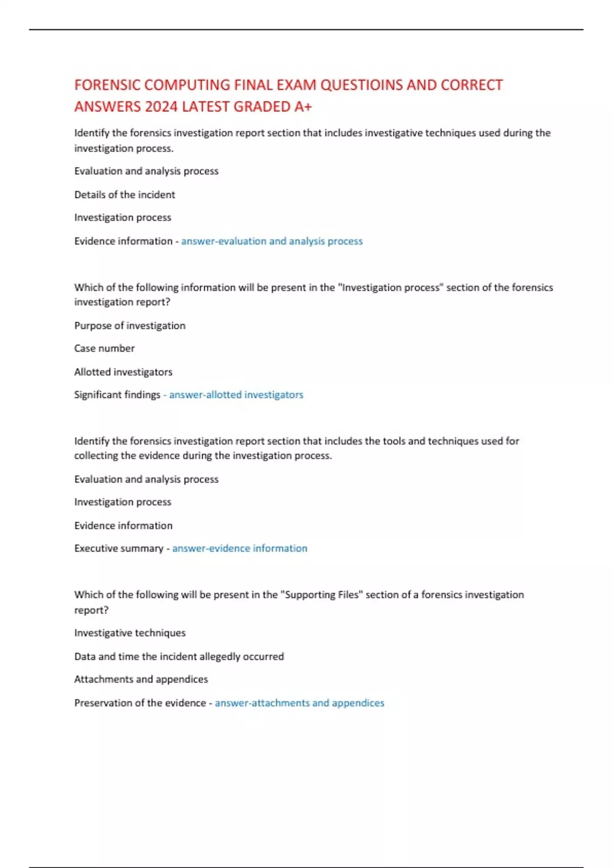 FORENSIC COMPUTING FINAL EXAM QUESTIOINS AND CORRECT ANSWERS 2024 LATEST GRADED A+ FORENSIC COMPUTING FINAL EXAM QUESTIOINS AND CORRECT ANSWERS 2024 LATEST GRADED A+ FORENSIC COMPUTING FINAL EXAM QUESTIOINS AND CORRECT ANSWERS 2024 LATEST GRADED A+ FORENSIC COMPUTING FINAL EXAM QUESTIOINS AND CORRECT ANSWERS 2024 LATEST GRADED A+