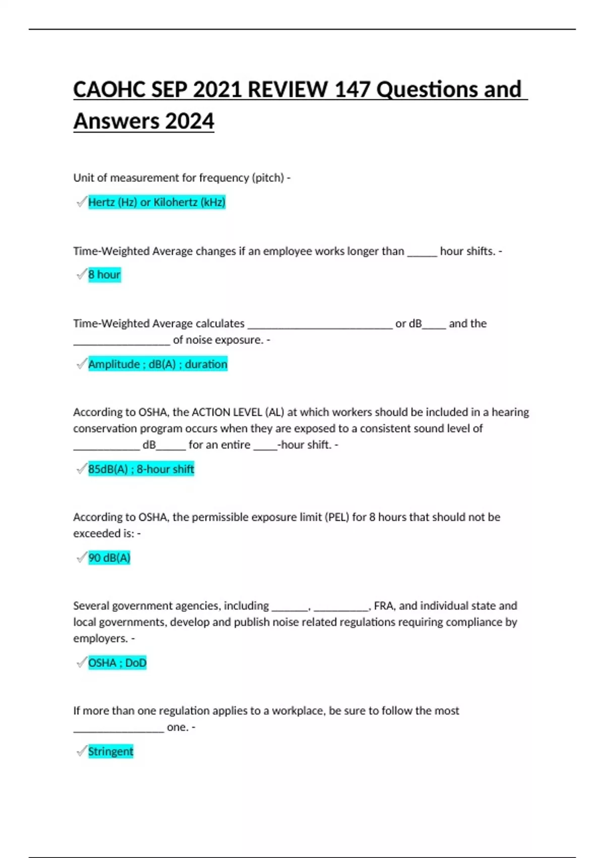 CAOHC SEP 2021 REVIEW 147 Questions and Answers 2024.