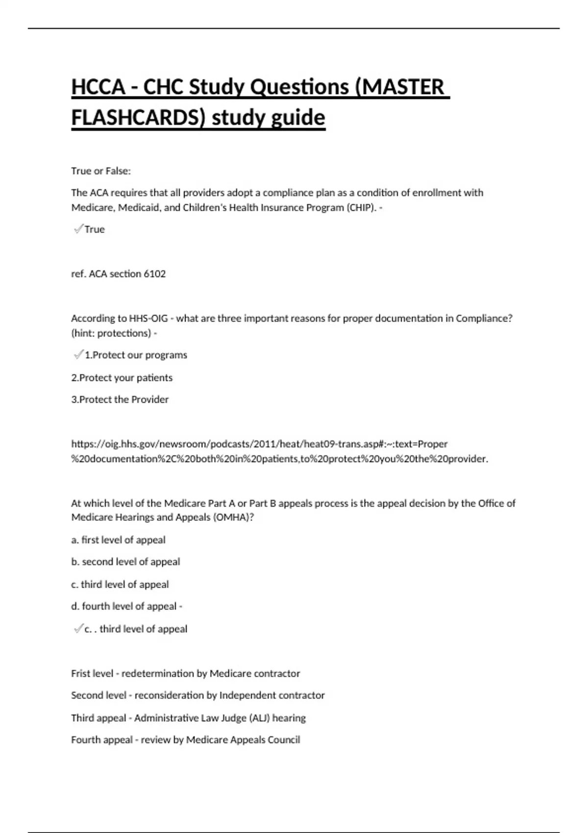 HCCA - CHC Study Questions (MASTER FLASHCARDS) study guide.