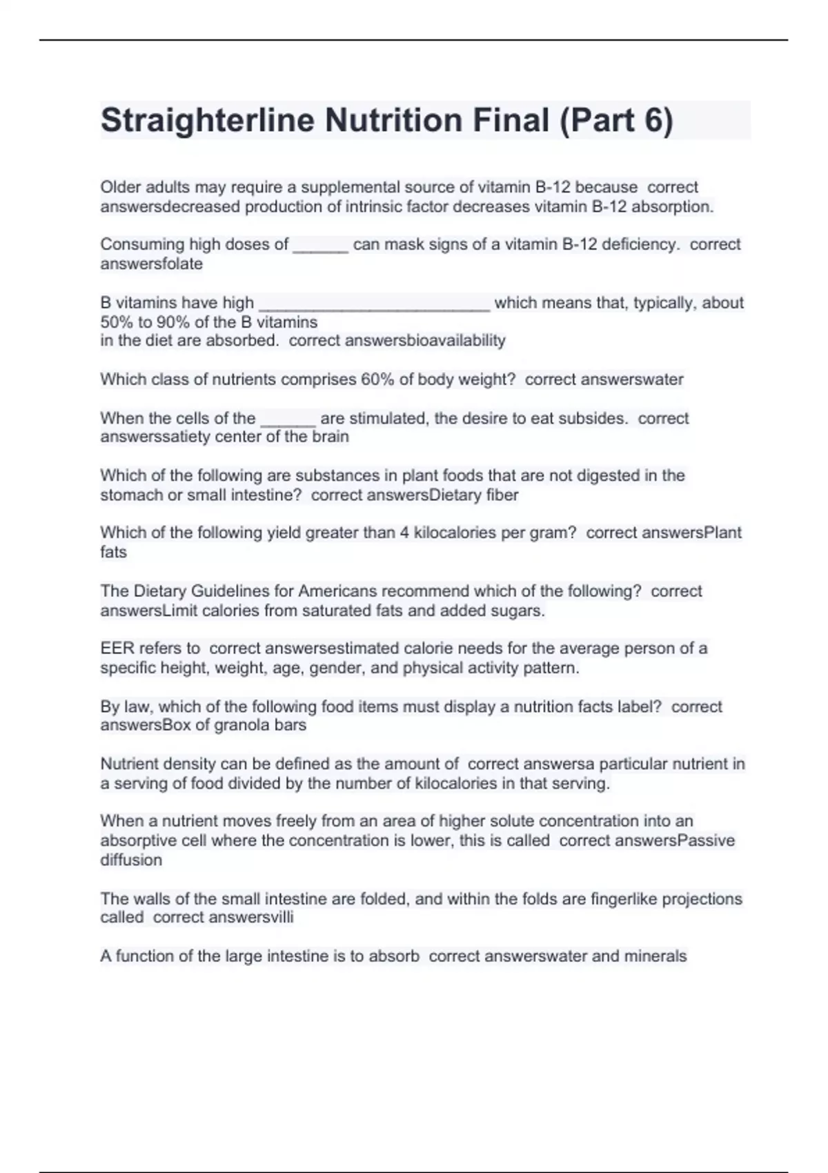Straighterline Nutrition Final (Part 6) with correct solutions 2024