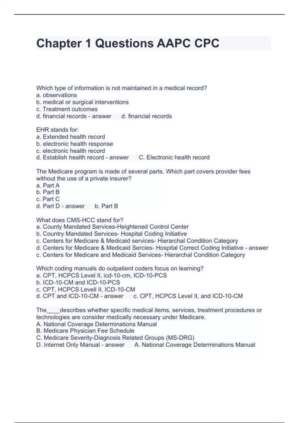 Chapter 1 Questions AAPC CPC