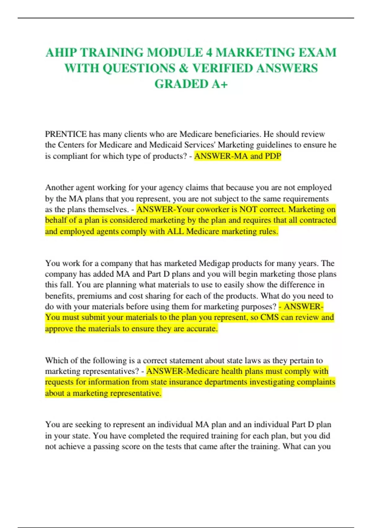 AHIP TRAINING MODULE 4 MARKETING EXAM