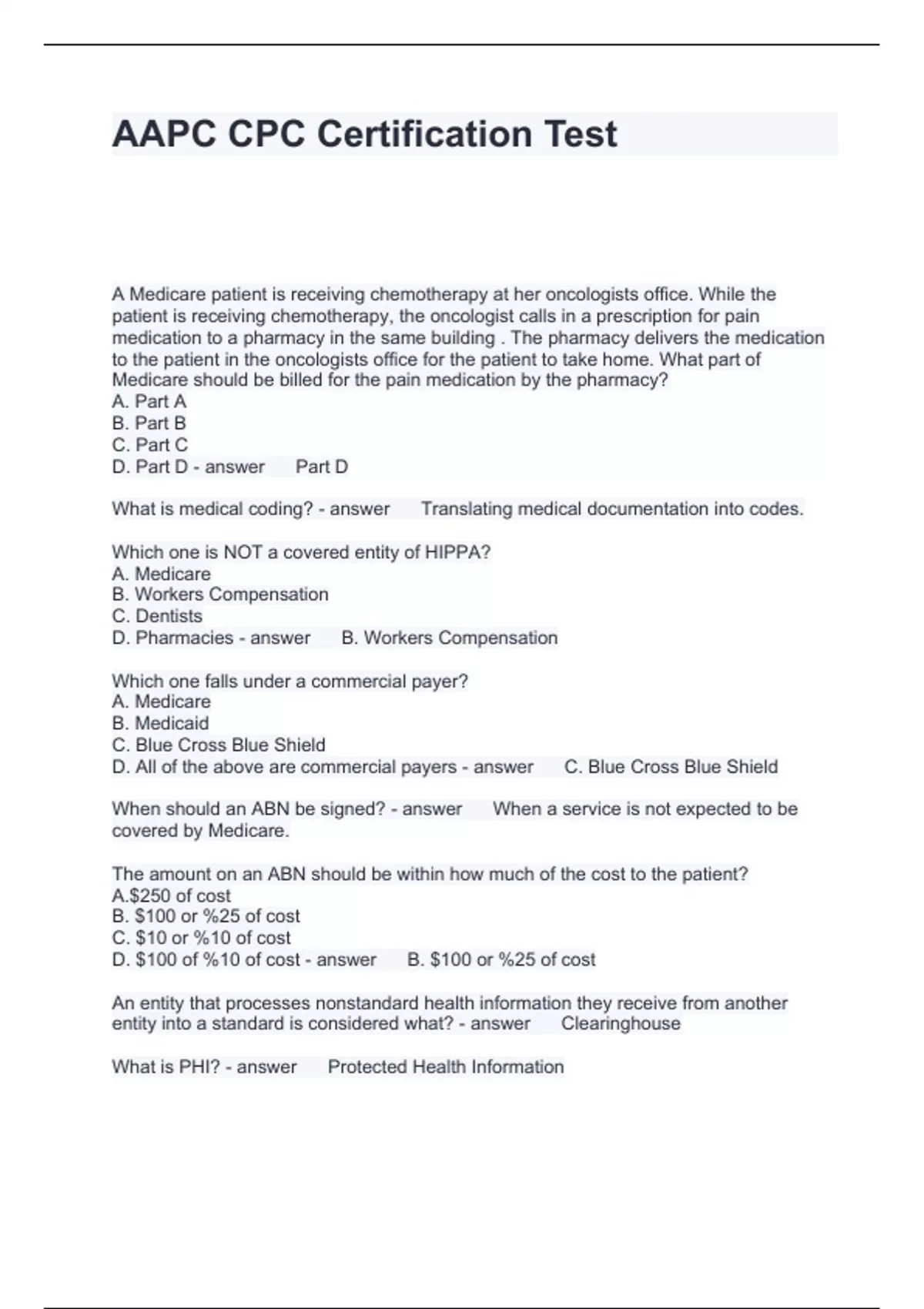 AAPC CPC Certification Test Questions and Answers 100% correct