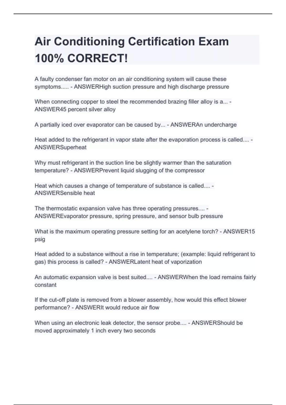 air conditioning certification exam 100 correct