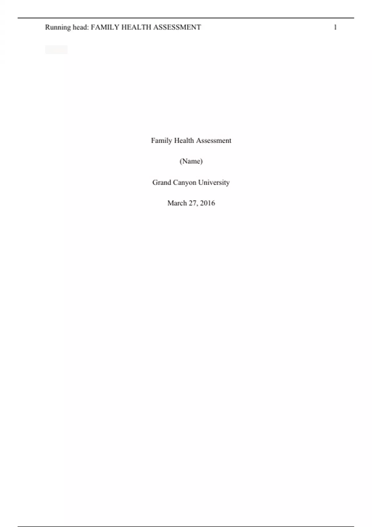 Wk 4 Writing Assignment Family Health Assessment