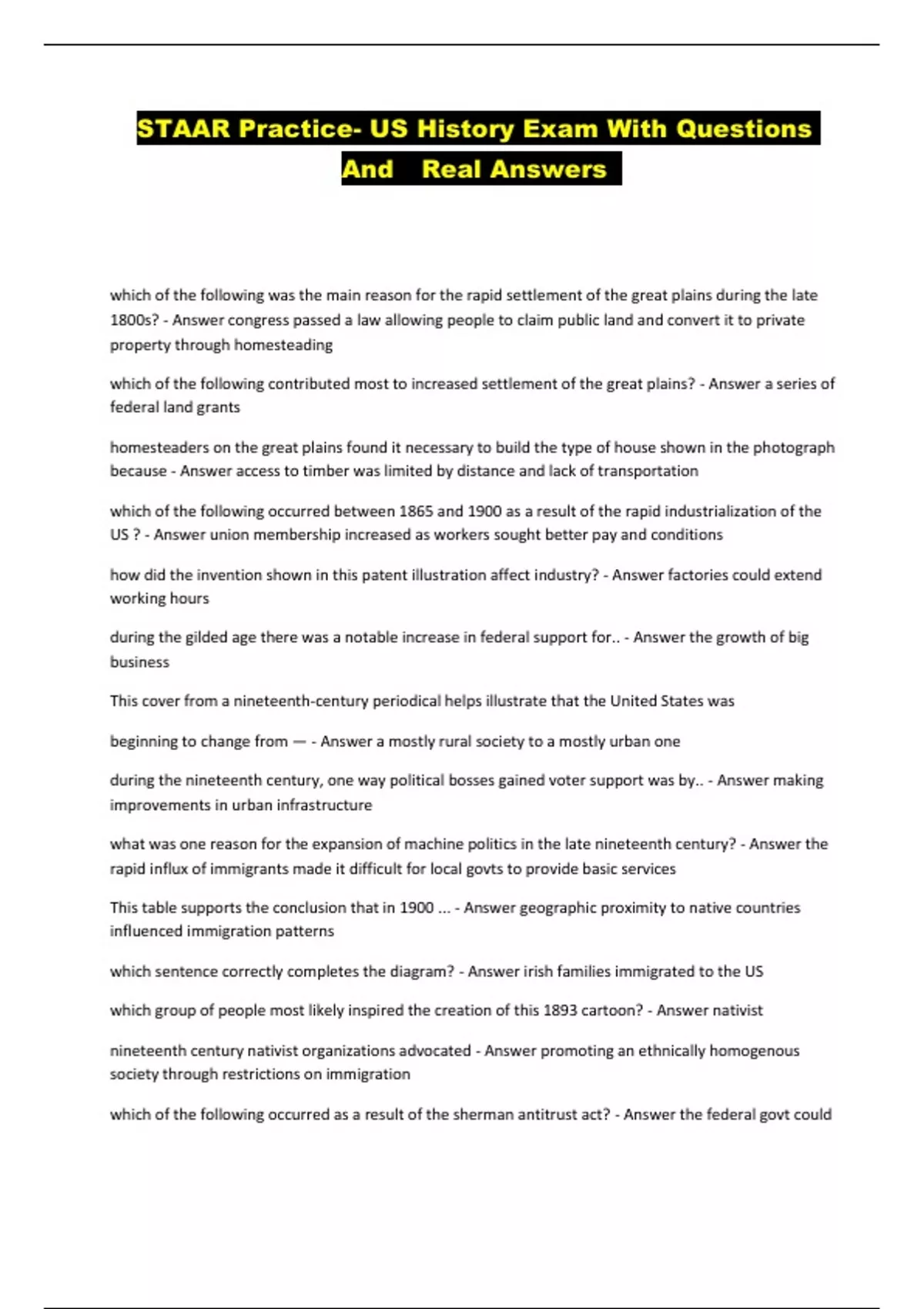 STAAR Practice- US History Exam With Questions And Real Answers ...