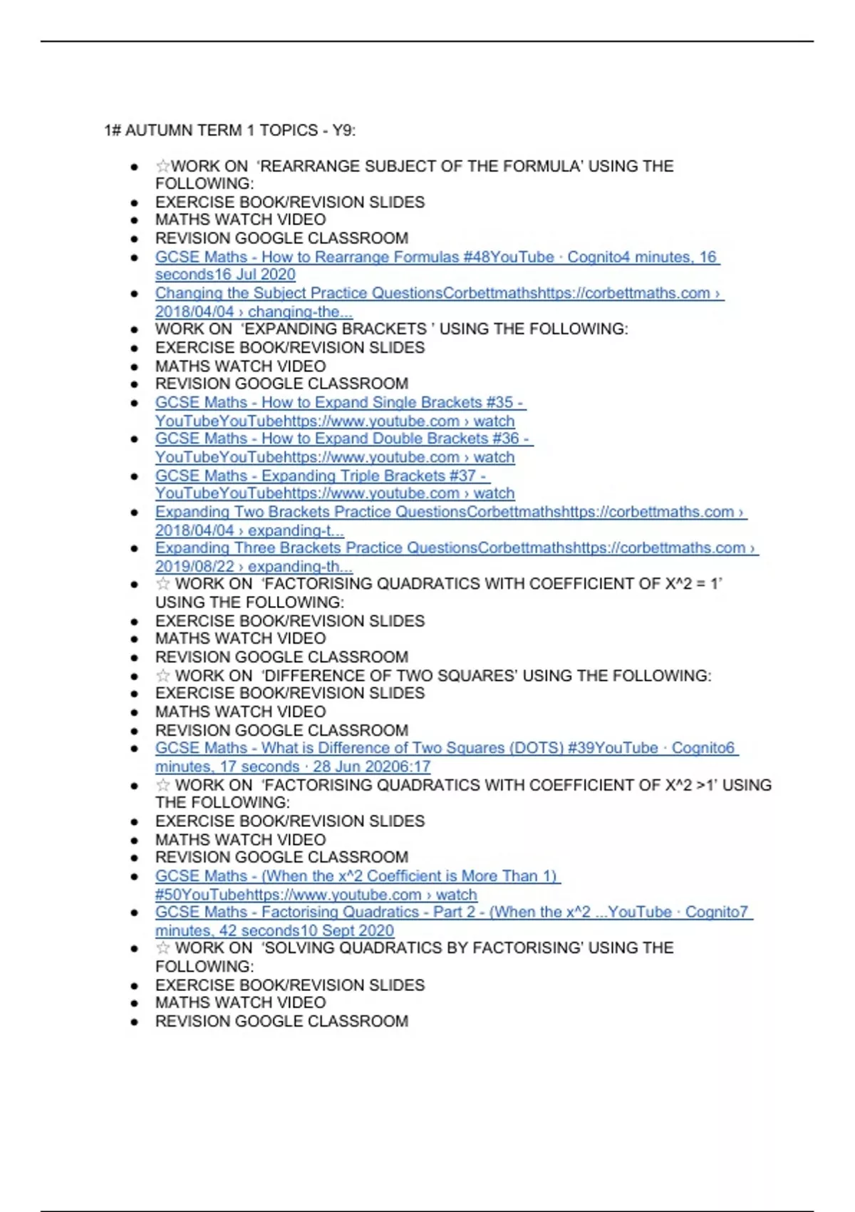 1# AUTUMN TERM 1 TOPICS - Y9: