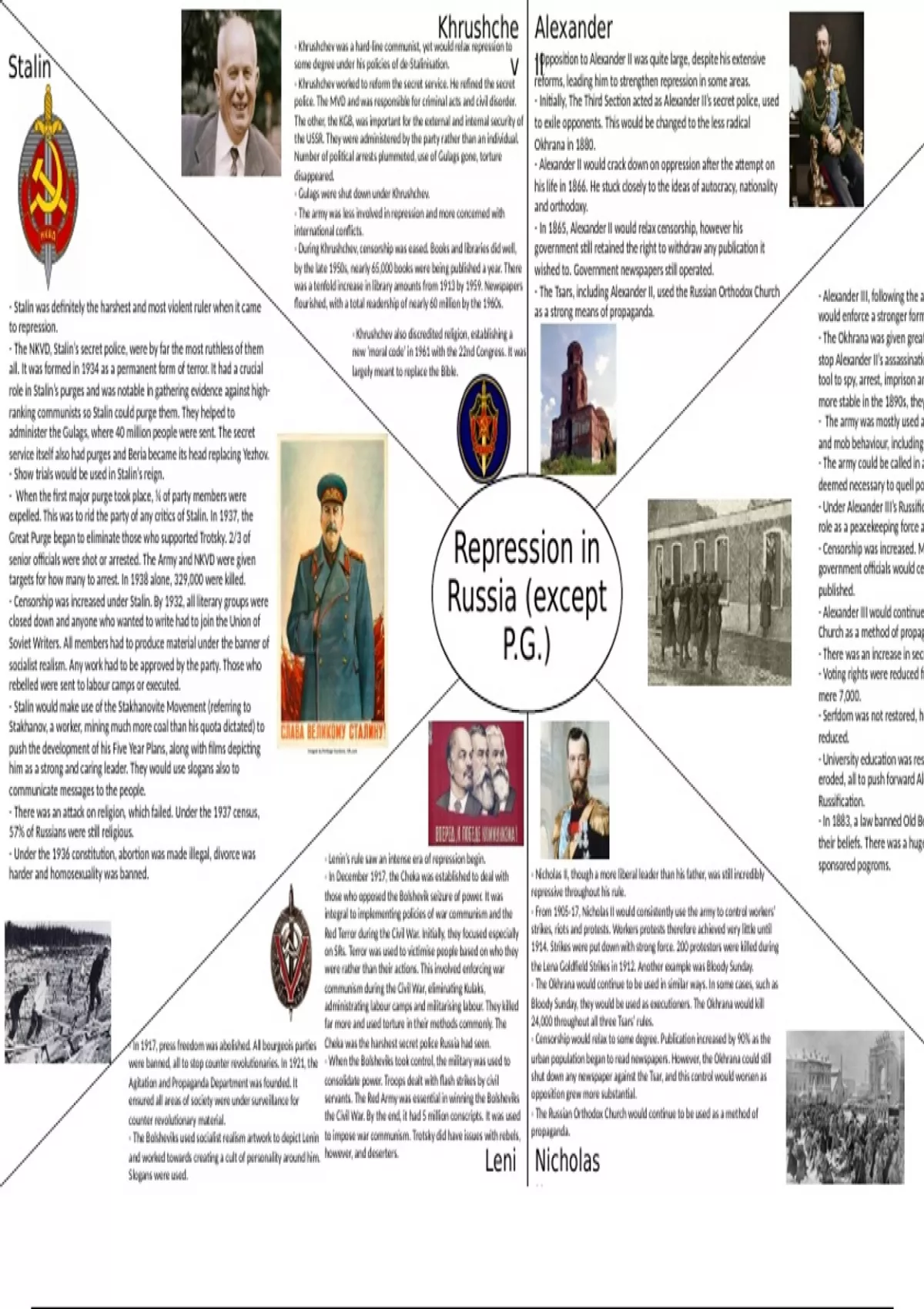 to repression. - Khrushchev also discredited religion, establishing a - The Okhrana was given great