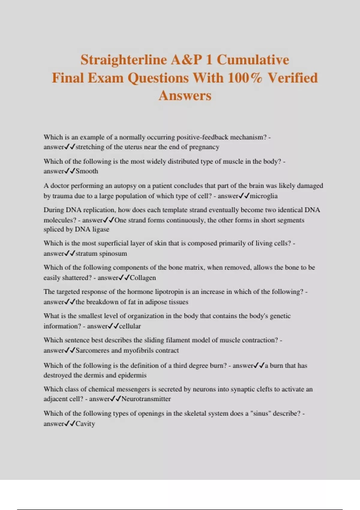 Straighterline A&P 1 Cumulative Final Exam Questions With 100% Verified Answers