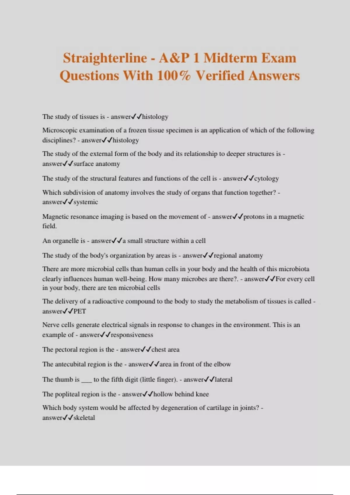Straighterline - A&P 1 Midterm Exam Questions With 100% Verified Answers