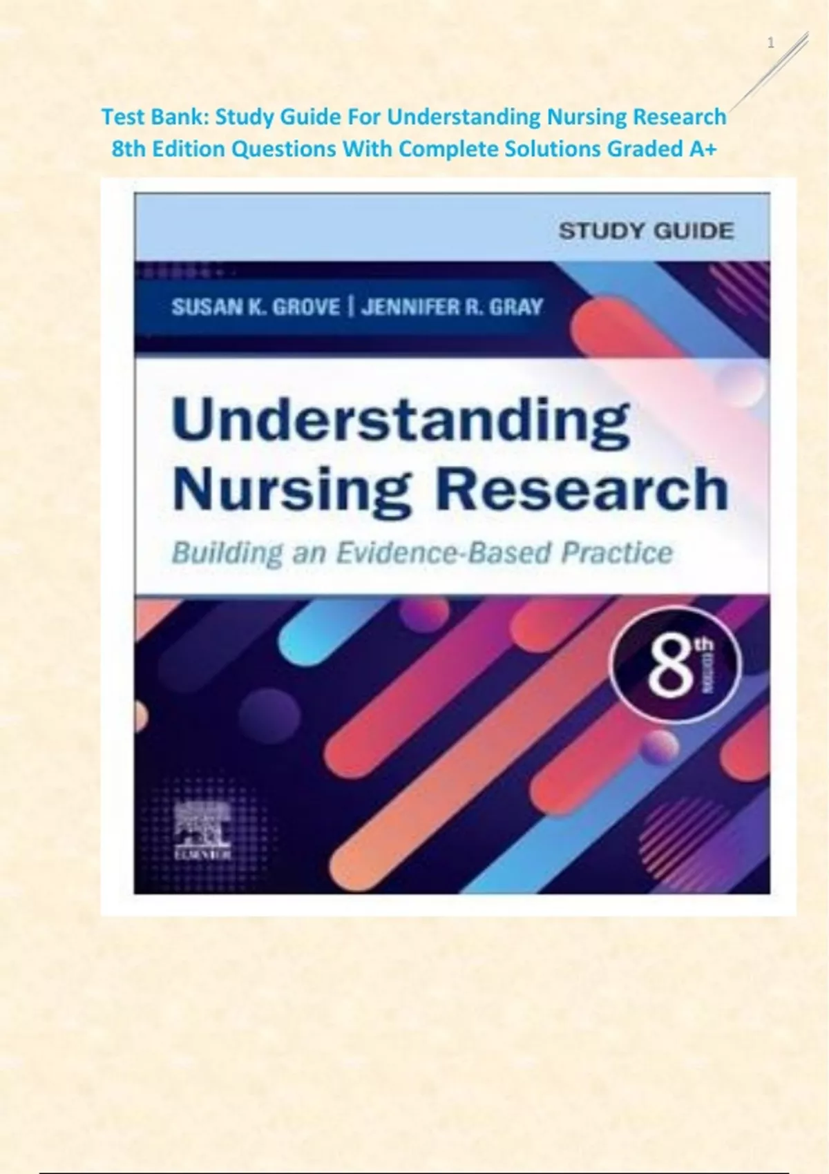 Test Bank: Study Guide For Understanding Nursing Research 8th Edition Questions With Complete Solutions Graded A+ Test Bank: Study Guide For Understanding Nursing Research 8th Edition Questions With Complete Solutions Graded A+