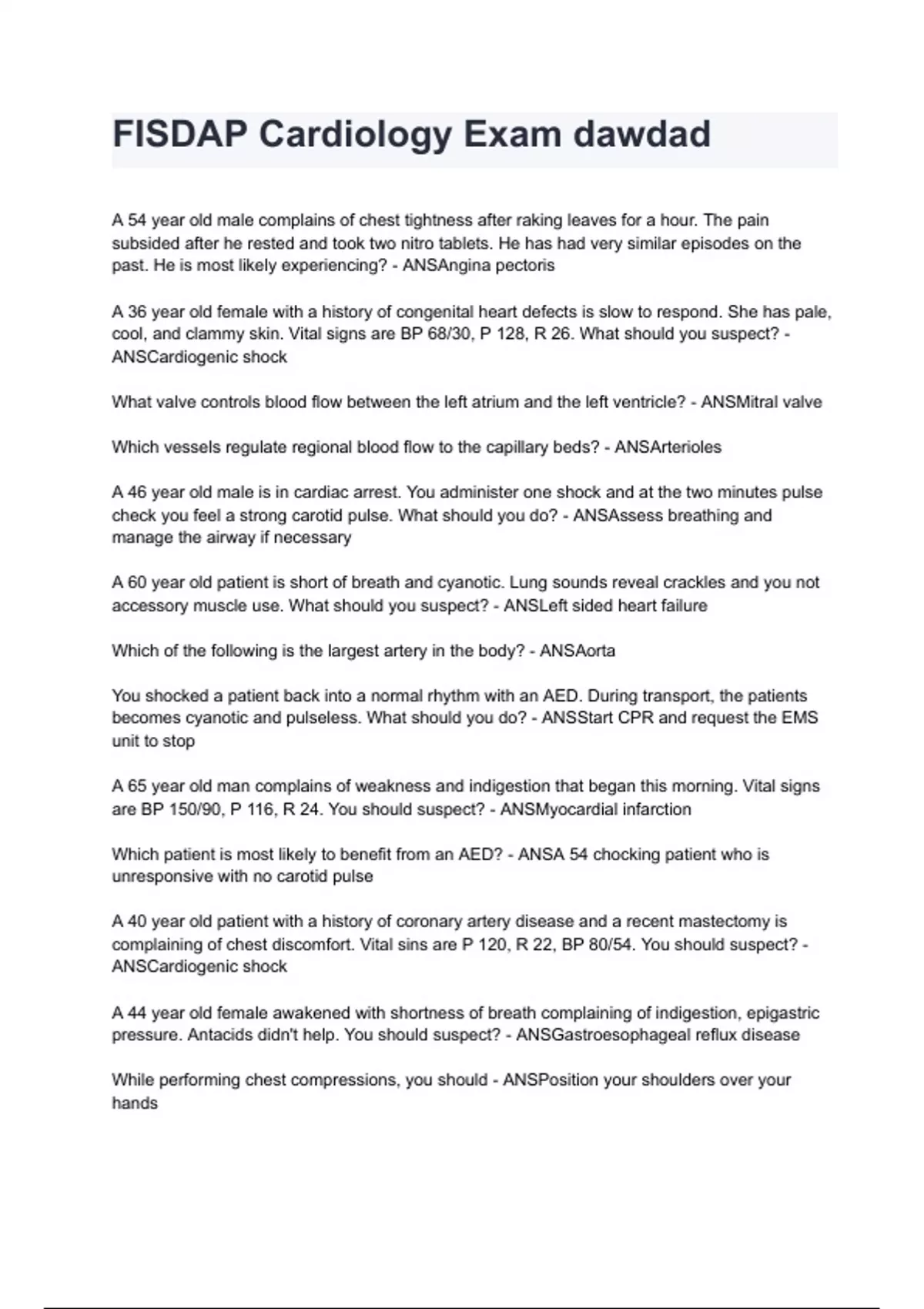 Which patient is most likely to benefit from an AED? - ANSA 54 chocking patient who is