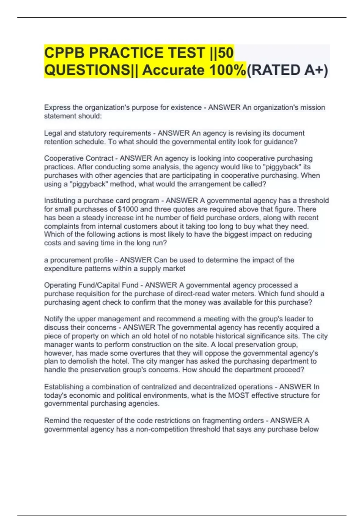 CPPB PRACTICE TEST ||50 QUESTIONS|| Accurate 100%(RATED A+)