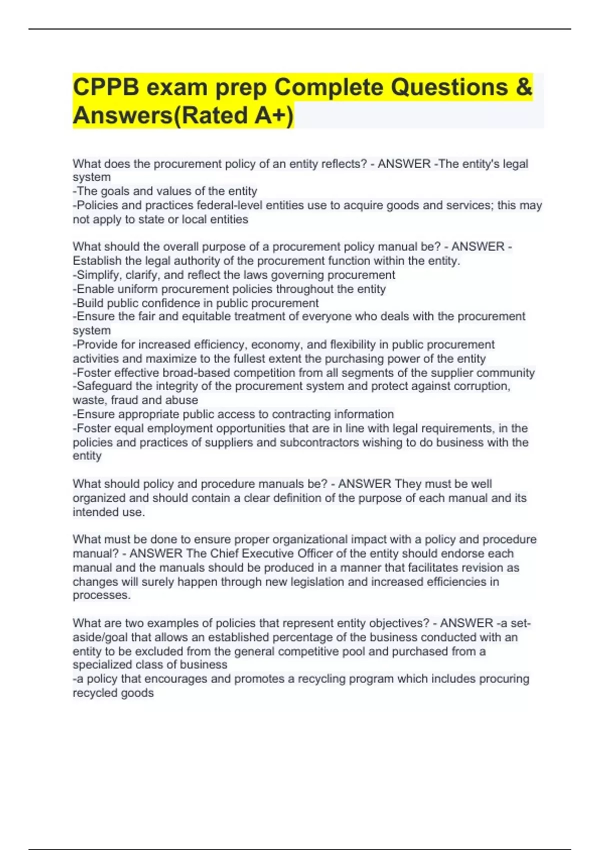 CPPB exam prep Complete Questions & Answers(Rated A+)