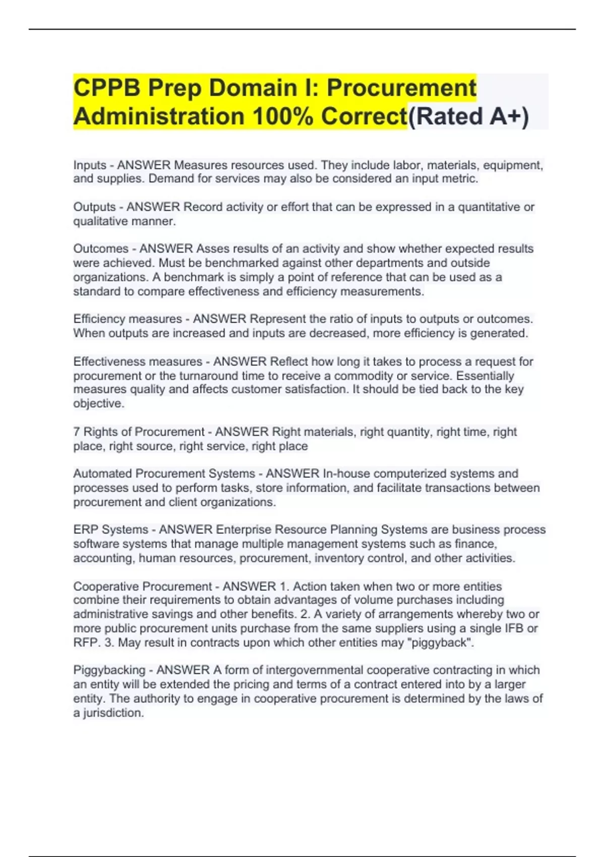CPPB Prep Domain I: Procurement Administration 100% Correct(Rated A+)