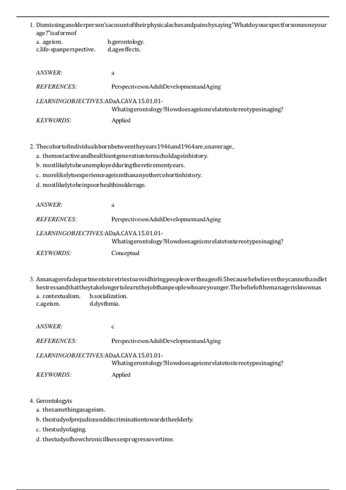 a. ageism. b.gerontology.
