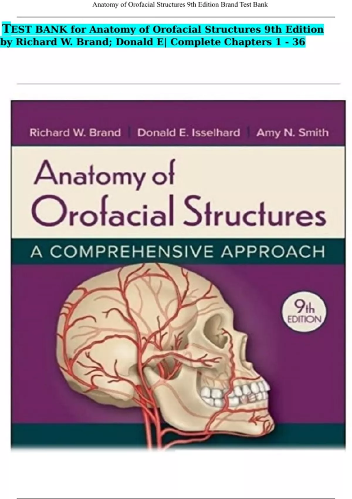 TEST BANK for Anatomy of Orofacial Structures 9th Edition by Richard W. Brand; Donald E| Complete Chapters 1 - 36