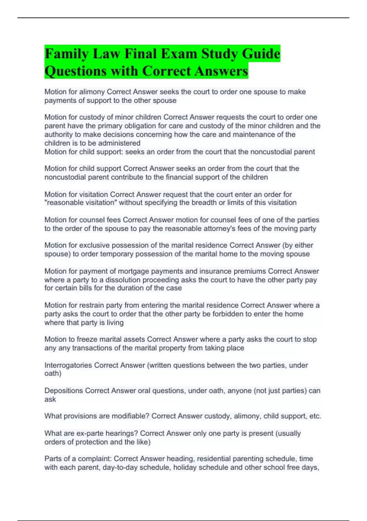 Family Law Final Exam Study Guide Questions with Correct Answers
