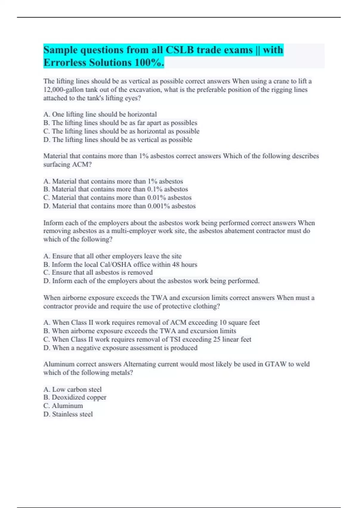 Sample questions from all CSLB trade exams || with Errorless Solutions 100%.