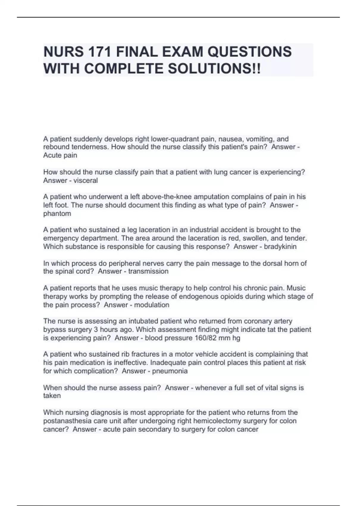 nurs 171 final exam questions with complete soluti