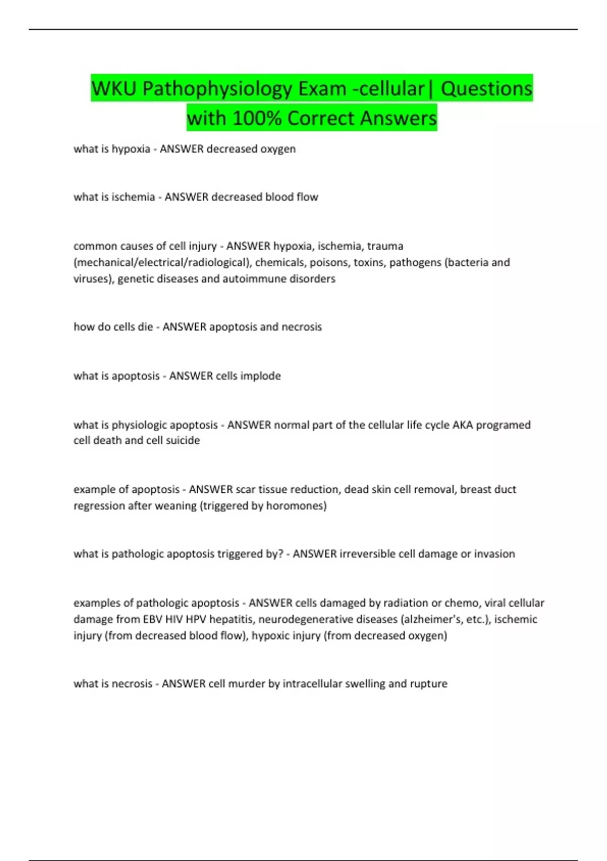 WKU Pathophysiology Exam -cellular| Questions with 100% Correct Answer
