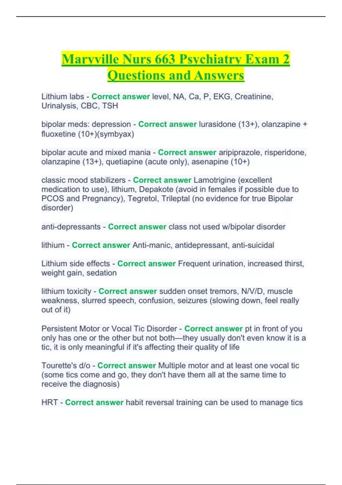 Maryville Nurs 663 Psychiatry Exam 2 Questions and Answers.Maryville Nurs 663 Psychiatry Exam 2 Questions and Answers.