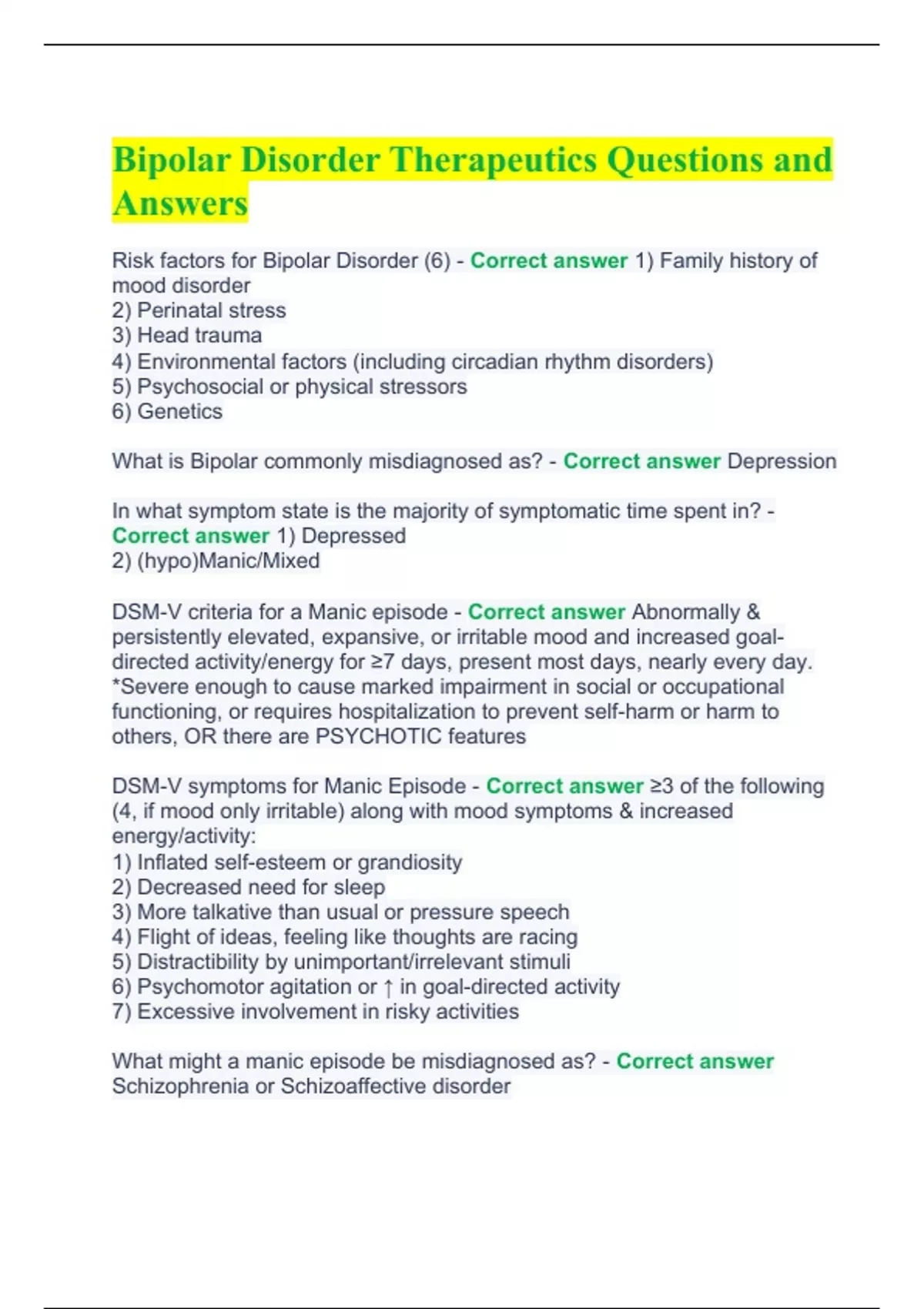 Bipolar Disorder Therapeutics Questions and Answers.