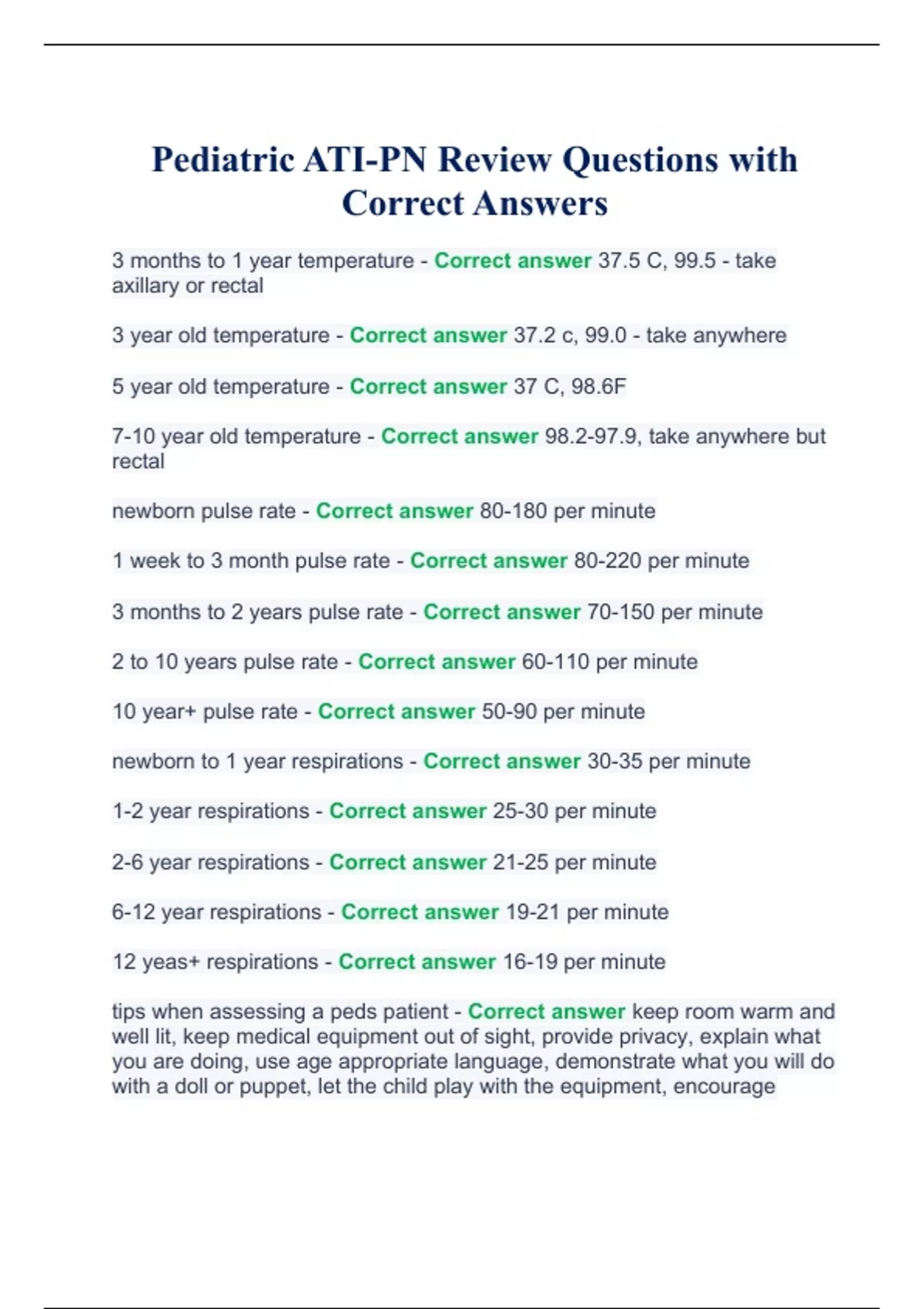 Pediatric ATI-PN Review Questions with Correct Answers.